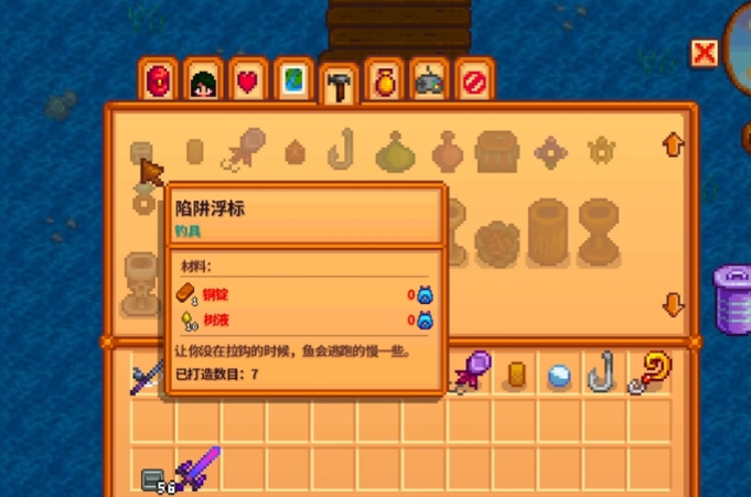 钓具系统提供了更专业的钓鱼辅助功能。游戏中共有九种钓具,包括旋式鱼饵、陷阱浮标、软木塞浮标等,每种钓具都有独特的效果。例如陷阱浮标能降低进度条66%的下降速度,适合钓取难度较高的鱼类;而软木塞浮标可以增加钓鱼条的尺寸,降低操作难度。钓具的耐久度通常为20次,只有成功钓到鱼类时才会消耗耐久。玩家可以通过威利的鱼店购买或自行制作获取这些钓具。