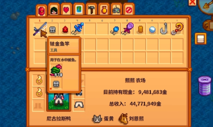 钓鱼装备的安装是提升钓鱼效率的关键步骤。首先需要明确的是,只有铱金鱼竿才能同时安装鱼饵和钓具,这是装备搭配的基础前提。玩家需要打开背包,左键或右键点击选中要安装的钓具,将鼠标移动到铱金鱼竿上然后右键点击即可完成安装。若要卸下钓具,则需要先移除鱼饵再右键单击鱼竿。钓具无法堆叠,每个钓具都会占据单独的背包格子。