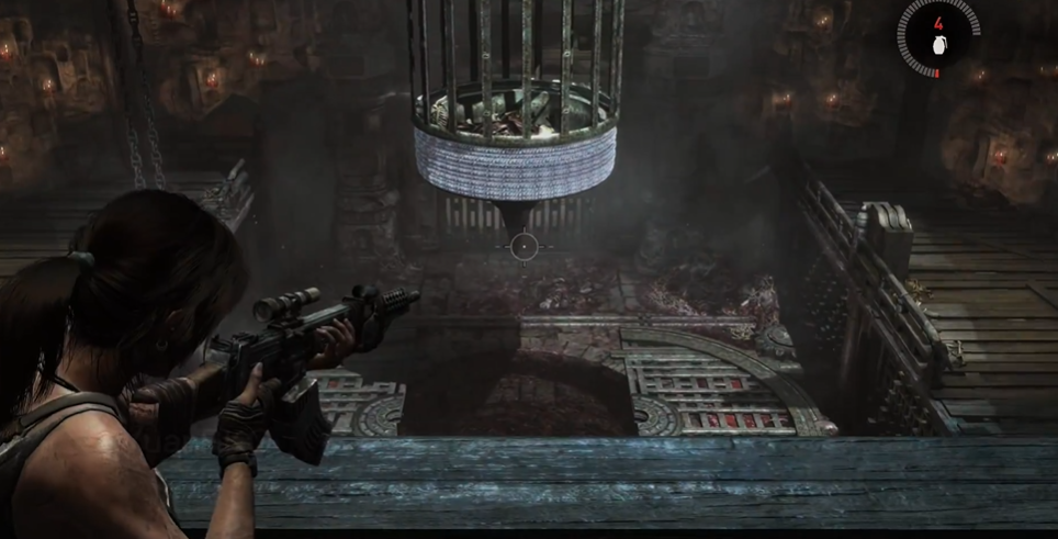 先通过拉杆升起笼子撞击墙壁,砸开隐藏的出口,再关闭井盖并降下笼子。随后攀爬到高层平台,用绳索箭矢拉动笼子使其摆动,在笼子靠近时跳上顶部,借助摆动惯性跃入目标区域。这种解谜方式对玩家的空间判断和操作连贯性要求较高,建议多次尝试以熟悉笼子的摆动规律。