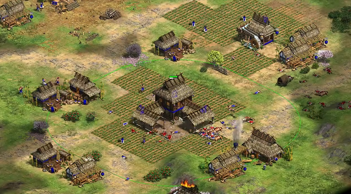 快速发育的核心在于从游戏一开始就高效管理村民和资源,确保经济基础稳固。游戏初始阶段应立即派遣村民建造房屋以避免人口瓶颈,并持续生产村民以扩大劳动力规模。初始村民应优先采集附近食物资源如羊只,同时派出侦察单位探索地图并将野生动物引回基地附近。村民数量达到六人时可专注于食物采集,后续新增村民则分配至伐木工作,木材是建造建筑和农田的关键资源。保持村民不间断生产能够为后续时代升级积累必要物资,避免因资源短缺导致发展停滞。