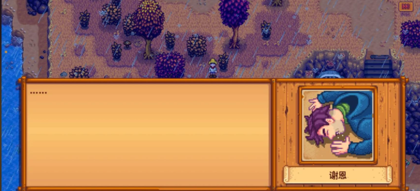 触发谢恩悬崖剧情的核心前提是与他的好感度必须达到六颗心。这是其第二个六心事件,玩家需要先通过日常对话、赠送礼物等方式积累好感,并且确保已经触发过他的四心事件以及第一个六心事件。在好感度达标后,关键的触发条件是天气必须为雨天或暴风雨,并且时间需要在游戏内时间的早上9点至晚上8点之间。玩家需要手动前往地图上的煤矿森林,一旦进入,如果条件全部符合,剧情便会自动开始。如果游戏内长期不下雨,玩家可以使用雨天图腾来主动将天气更改为雨天以满足条件。