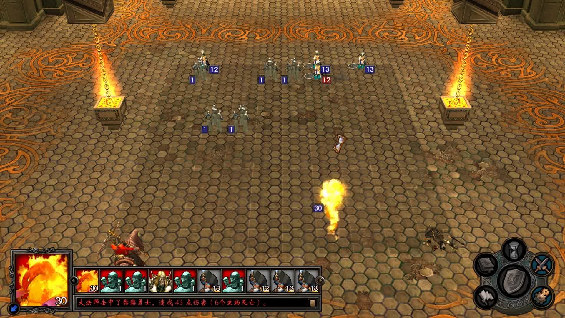 兵种搭配与战场操控是胜负关键,每个种族七级兵种可升级,升级后属性与能力大幅提升,战斗前需完成兵种升级。战场采用ATB行动条系统,单位速度与主动性决定行动顺序,高速单位可多次行动,弱化传统回合概念。排兵时远程兵种后置、近战肉盾前置,保护输出单位,避免远程被近身导致伤害减半。战斗中可选择移动、攻击、施法、等待、防御等操作,士气与运气影响战斗表现,高士气触发额外行动,低士气可能停滞,运气好可打出双倍伤害。魔法分为光明、黑暗、破坏、召唤四大派系,从魔法行会学习,群体增益魔法开局释放,单体控制与伤害魔法留作关键收割,魔法值可通过魔井、城镇过夜或技能回复。攻城战时守方依托城墙与箭塔优势,攻方需用破坏魔法拆城墙、飞行兵种翻越障碍,减少攻城损失。